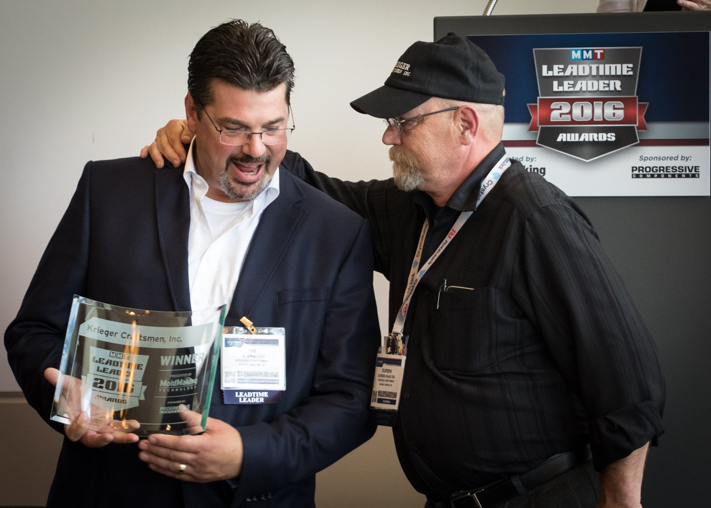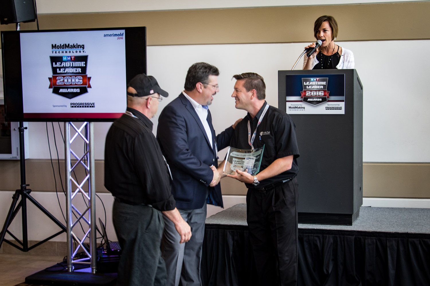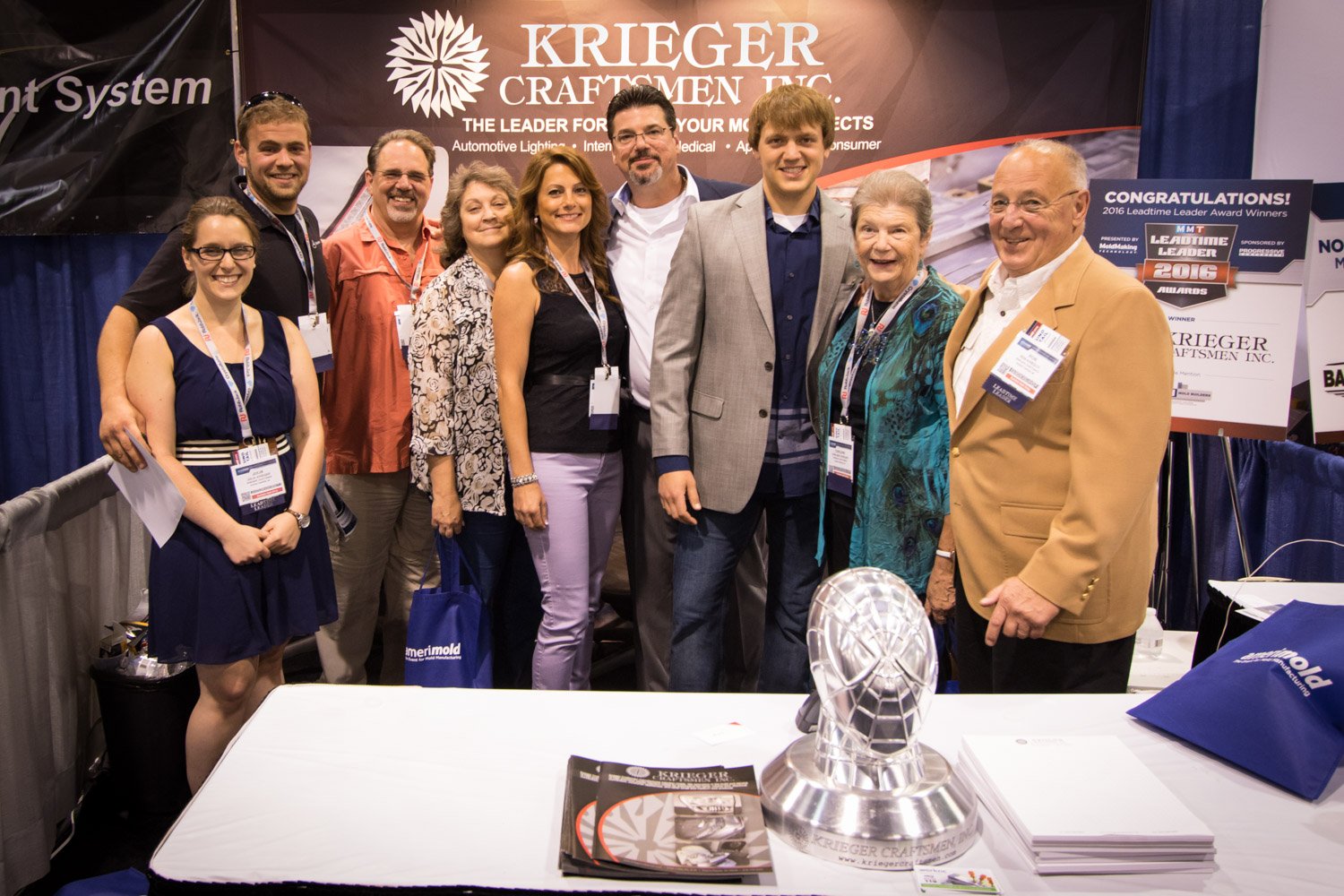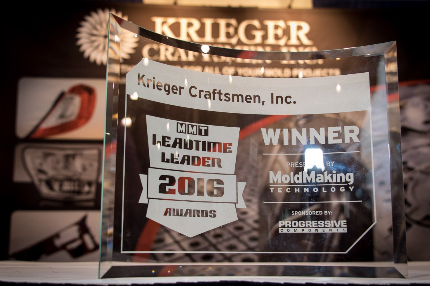 June 1, 2016, Krieger Craftsmen was awarded the prestigious 2016 Leadtime Leader Award by MoldMaking Technology Magazine. The award was presented during Amerimold 2016 held at The Suburban Collection Showplace in Novi, Michigan June 15-16. Photos from the presentation are shown below.